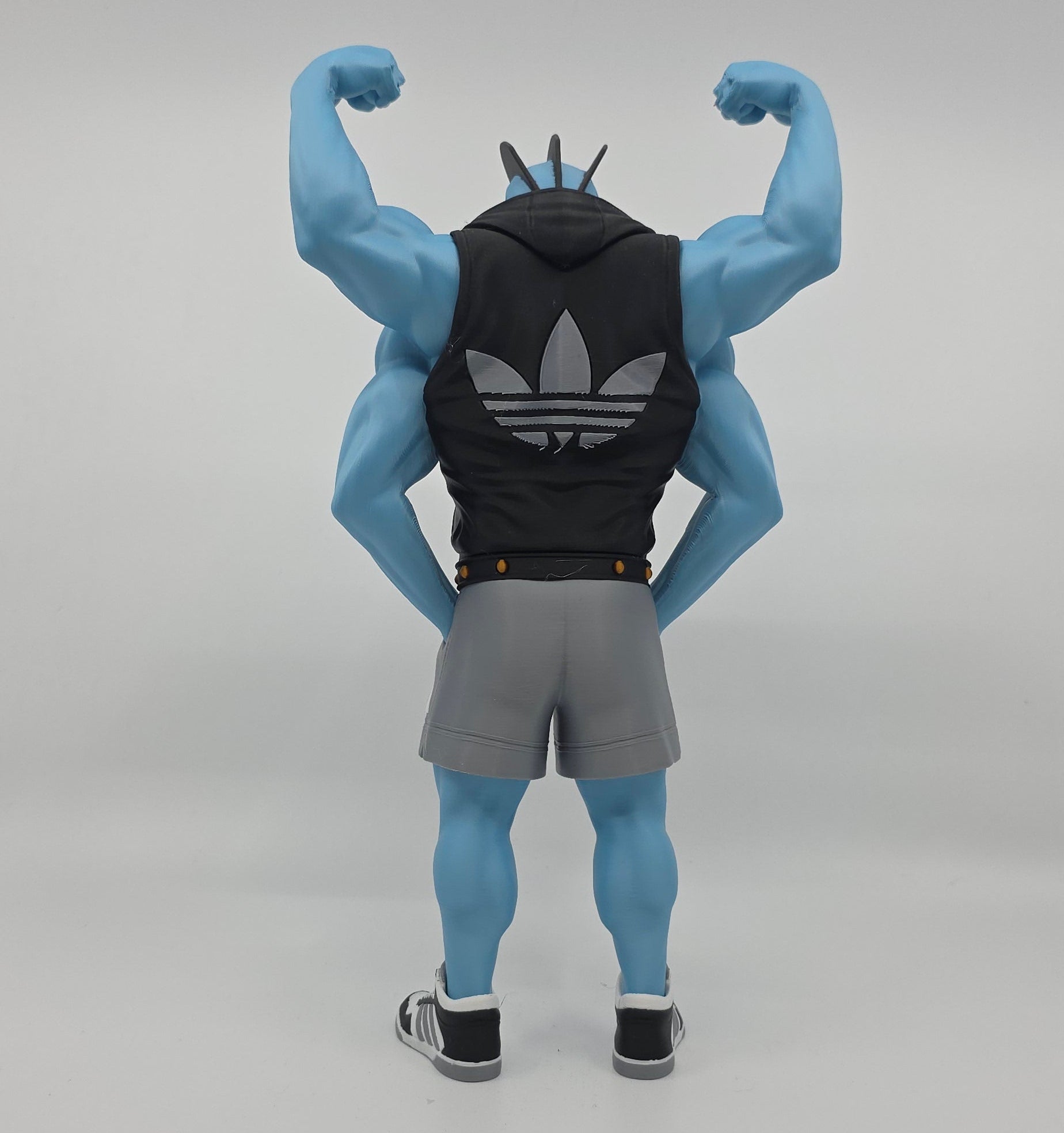 Bring unstoppable strength to your collection with this Urban Style Machamp Statue. This custom 3D printed figure reimagines the powerful fighting-type Pokémon with a bold gym-inspired streetwear design. Featuring Machamp’s iconic four-arm physique, athletic shorts, sneakers, and sleeveless hoodie, this statue blends classic Pokémon design with modern urban fitness culture.